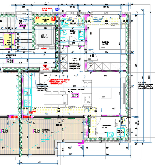 L’abitazione è libera sui tre lati, gli spazi architettonici sono valorizzati sia dalla tipologia di distribuzione che dalla scelta personale delle rifiniture.