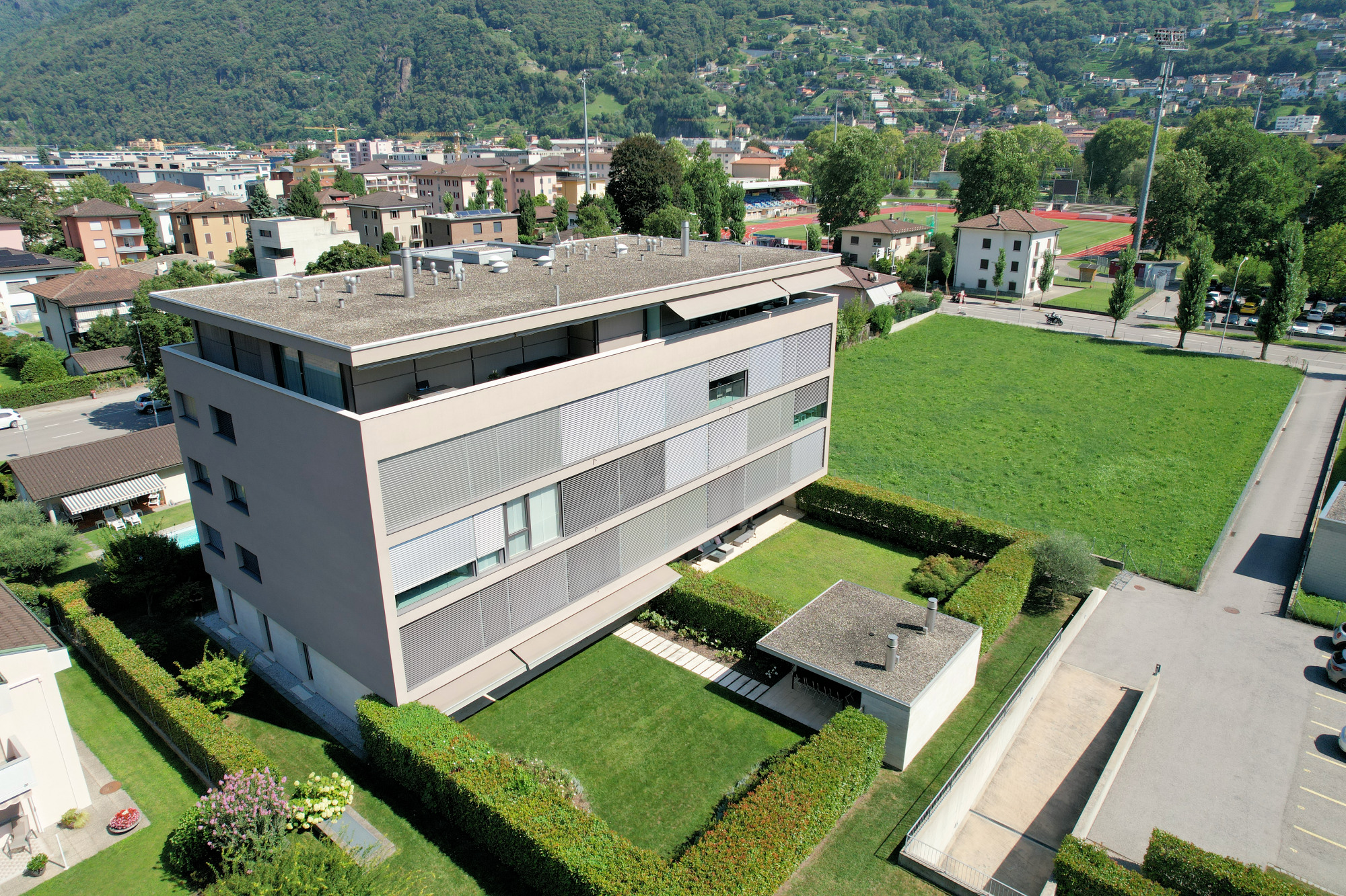 L’elegante costruzione del 2013, edificata in stile costruttivo tradizionale massiccio, si sviluppa su cinque livelli abitabili: Piano terreno con soltanto due abitazioni che godono dell’ampio giardino privato, ai piani intermedi appartamenti di taglio più piccolo ed all’ultimo piano due appartamenti attici.
