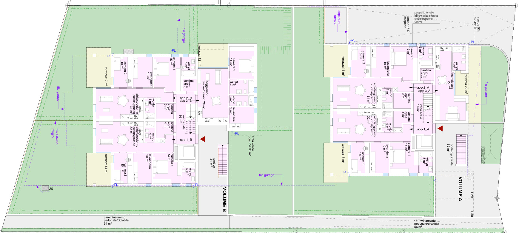 Ogni abitazione dispone della sua lavanderia privata ubicata all’interno dell’appartamento e della cantina collocata allo stesso piano, vicino all’ingresso principale.