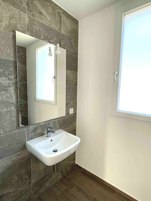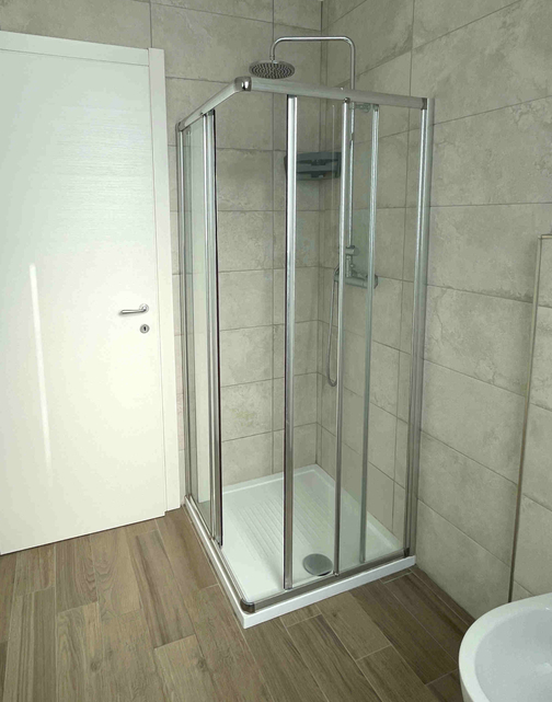 L’edificio è realizzato con pareti finite a gesso e tinteggiate, pavimenti in gres porcellanato con effetto legno e porte e finestre in PVC a taglio termico con vetri isolanti e stratificati.