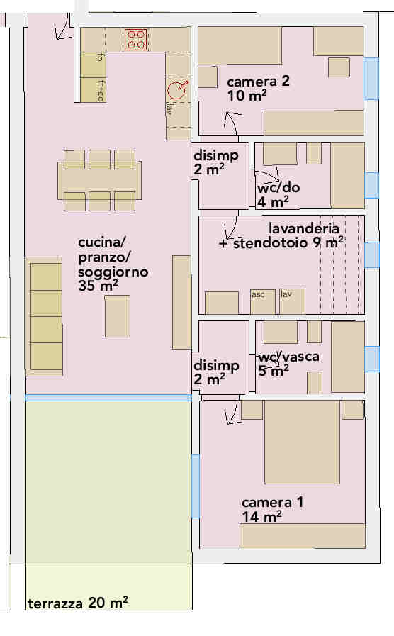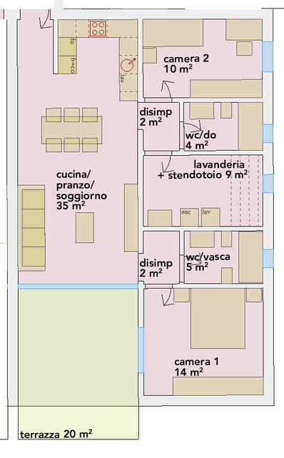 L’organizzazione interna degli appartamenti è caratterizzata da una chiara suddivisione tra la zona giorno e la zona notte, gli spazi abitabili risultano generosi, accoglienti e ben distribuiti.