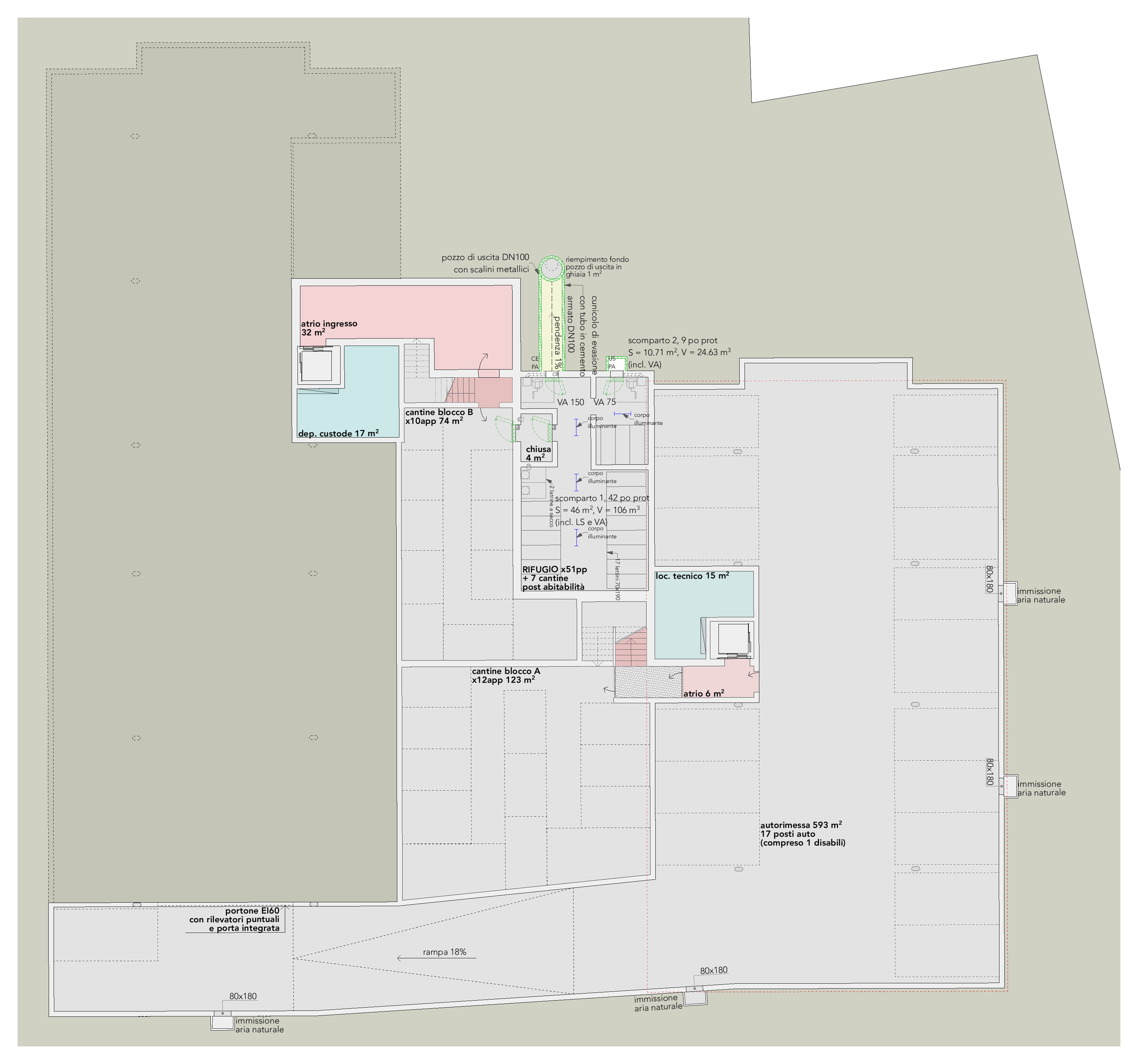 Al piano interrato trovano posto anche le cantine ed i locali tecnici.