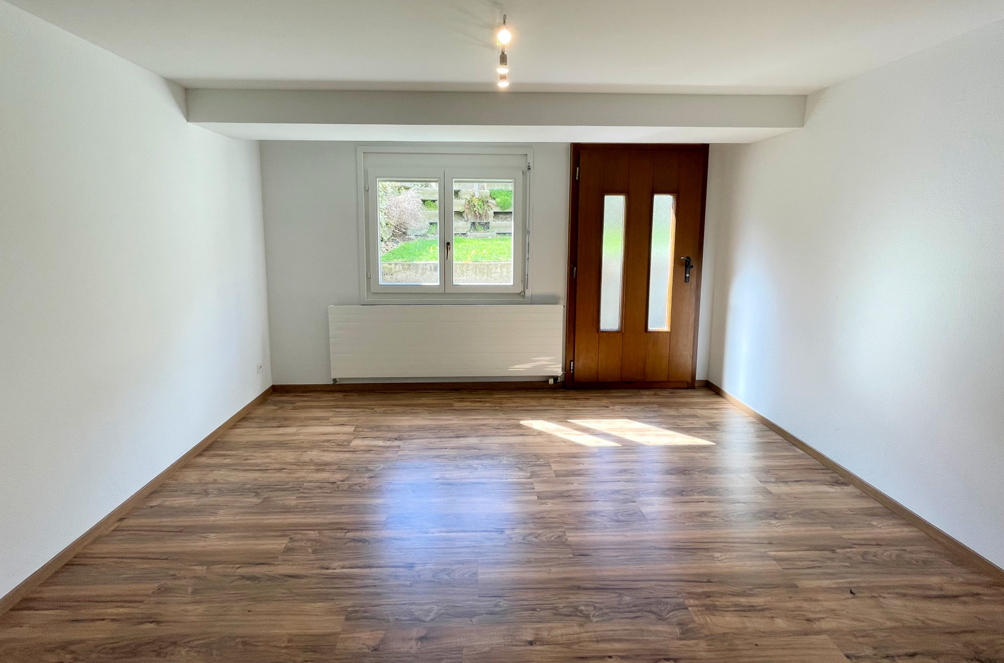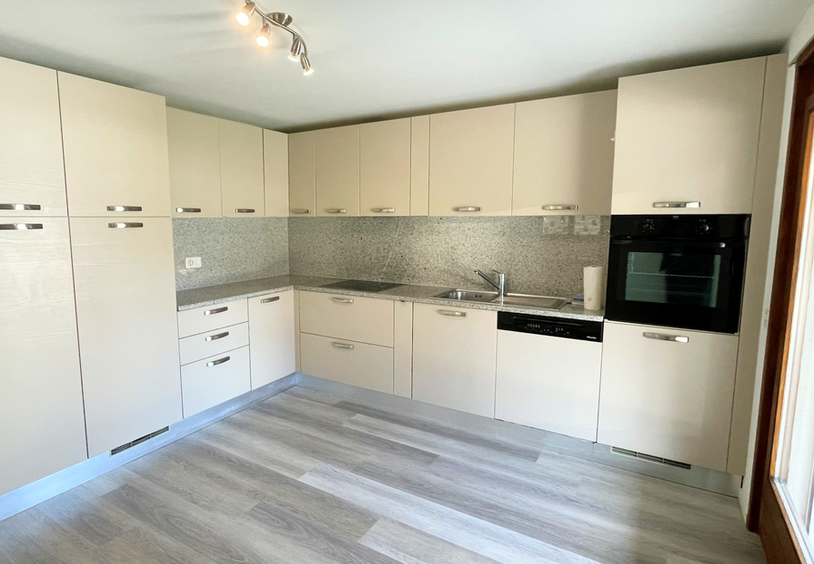 L’abitazione al piano inferiore di 3 ½ locali è stata completamente rinnovata ed anch’essa usufruisce di giardino pianeggiante indipendente.