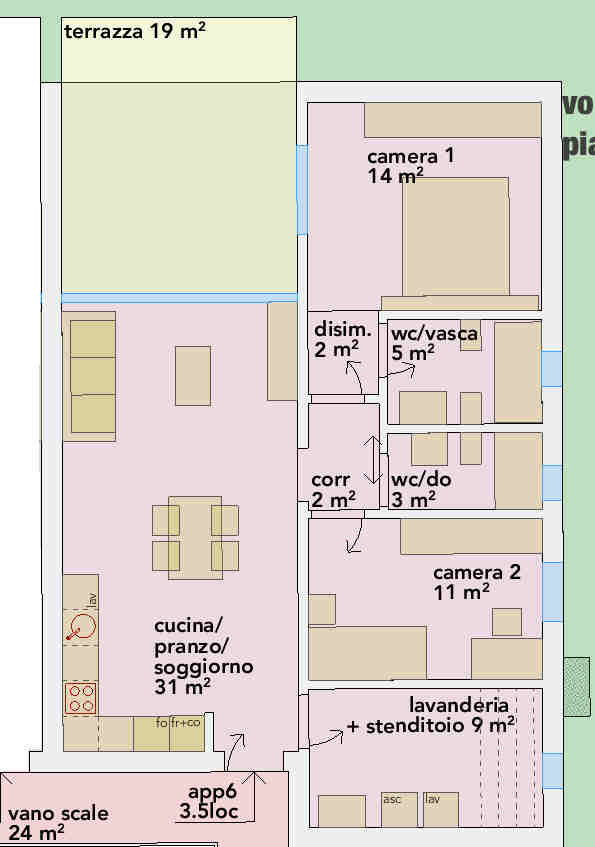 L’organizzazione interna degli appartamenti è caratterizzata da una chiara suddivisione tra la zona giorno e la zona notte, gli spazi abitabili risultano generosi, accoglienti e ben distribuiti.