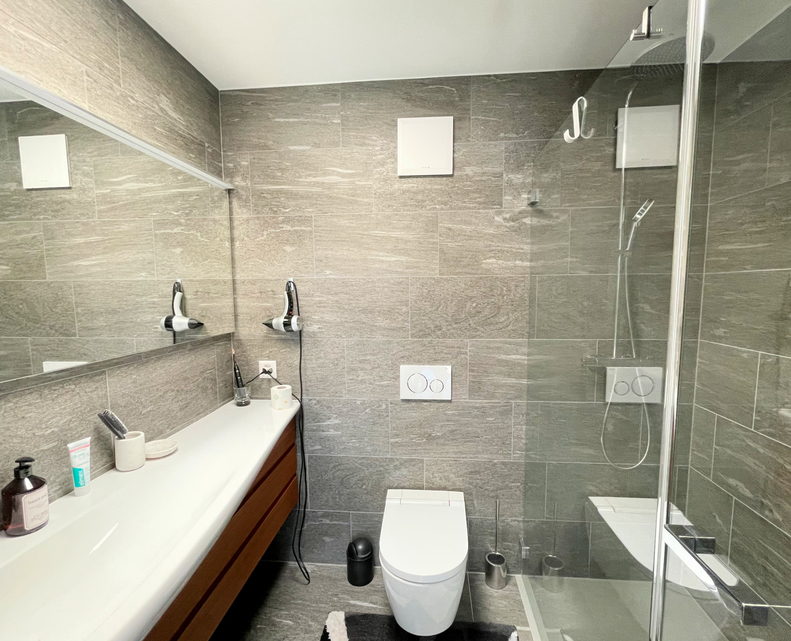 Oltre al bagno padronale, l'abitazione dispone di un secondo servizio, essenziale e funzionale, che include un pratico allacciamento per la colonna lava-asciuga, offrendo la comodità di una lavanderia privata direttamente in casa.