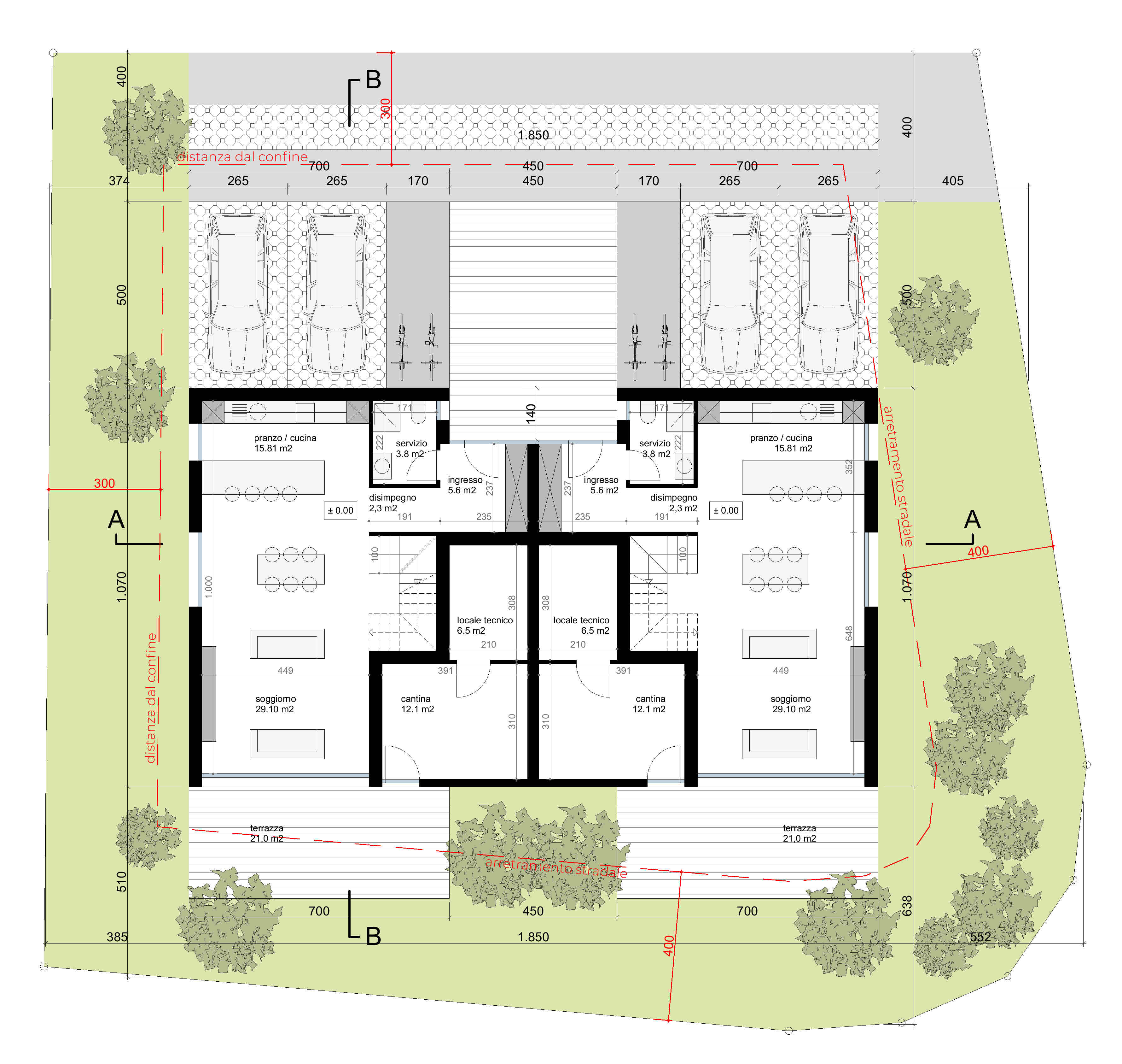 Gli spazi esterni sono garantiti sia dai giardini pianeggianti che dalle terrazze.