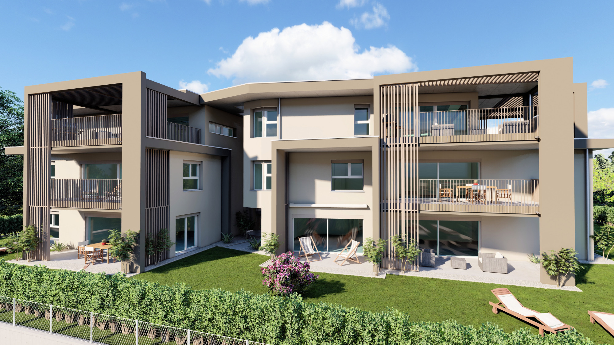 Gli spazi esterni sono garantiti dai grandi giardini e dalle ampie terrazze.