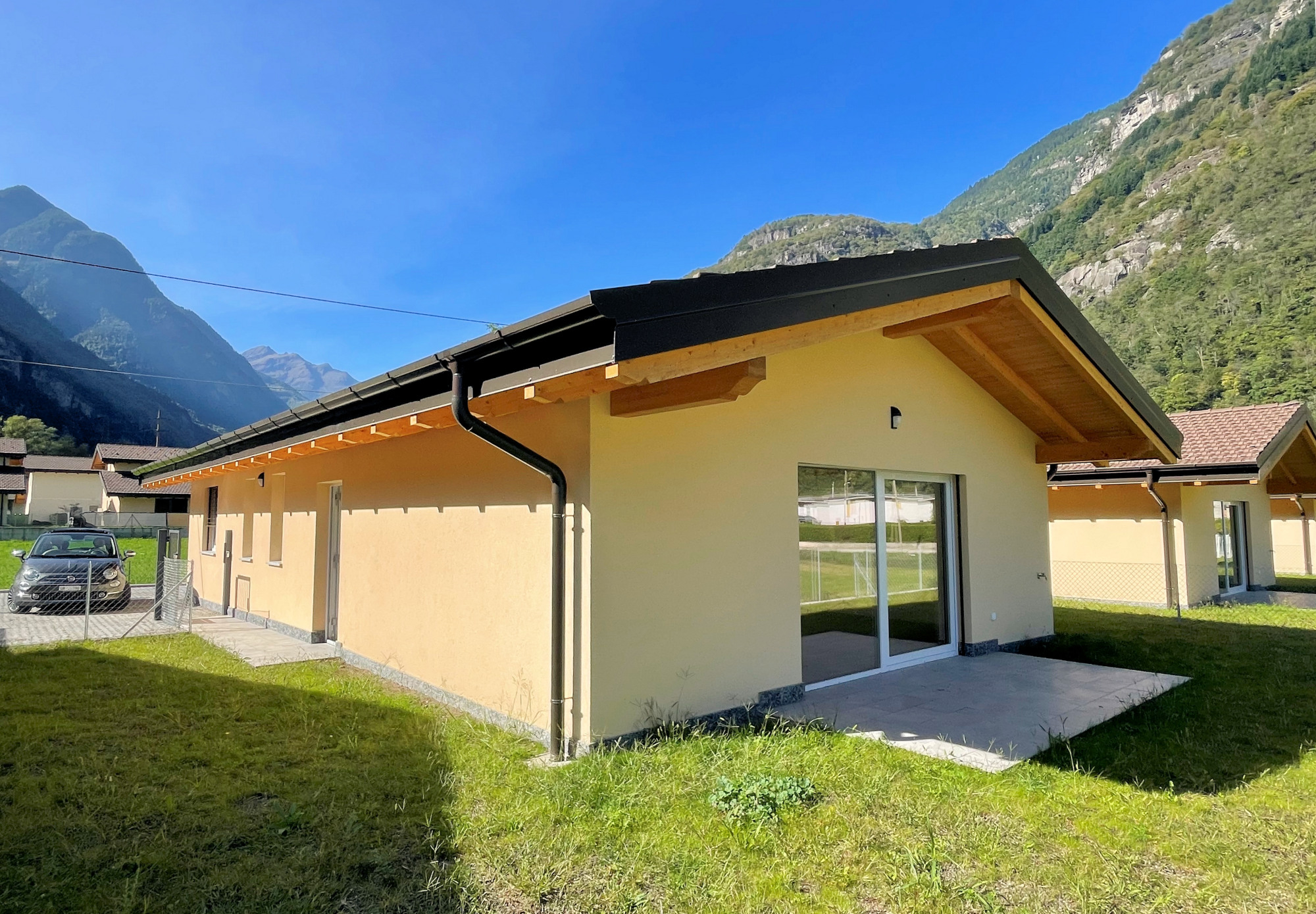 Nuova villetta unifamiliare su di un unico piano e con bel giardino pianeggiante