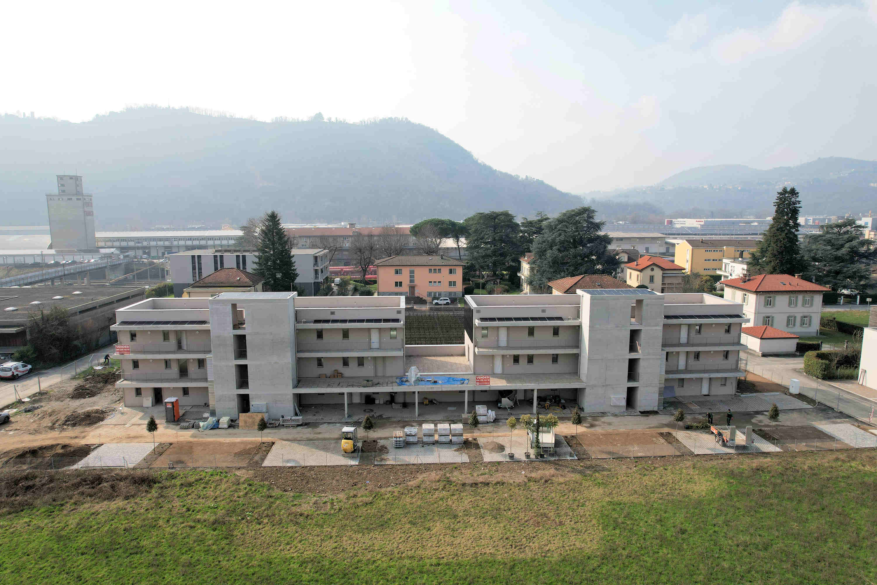 Le finiture sono state pensate per offrire uno standard abitativo di alto livello, pavimenti in gres, serramenti in alluminio a taglio termico con tripli vetri e oscuramento con lamelle a pacchetto elettriche, mentre le cucine sono accessoriate con elettrodomestici di qualità superiore.