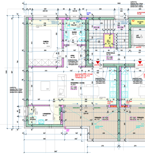 L’abitazione è libera sui tre lati, gli spazi architettonici sono valorizzati sia dalla tipologia di distribuzione che dalla scelta personale delle rifiniture.