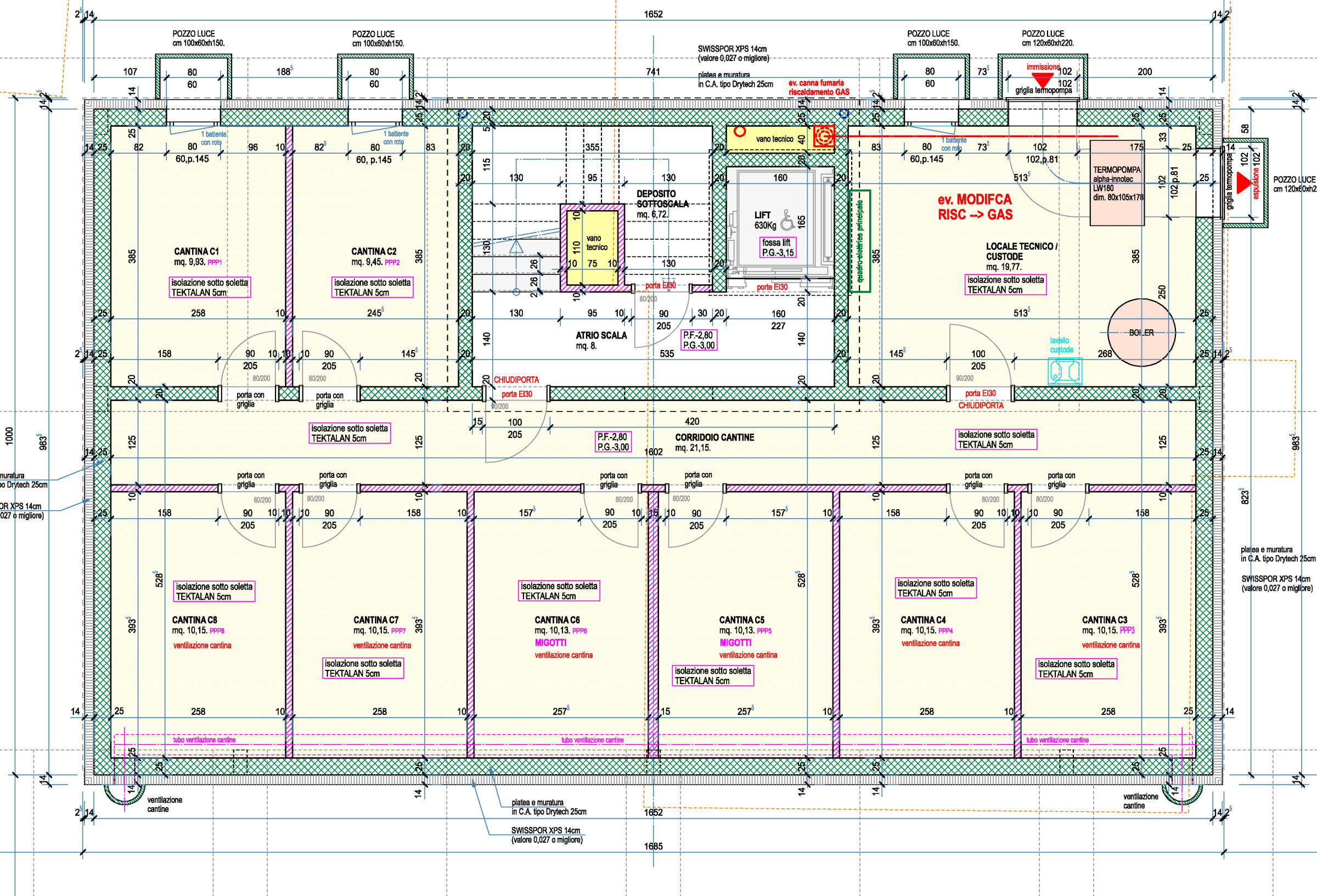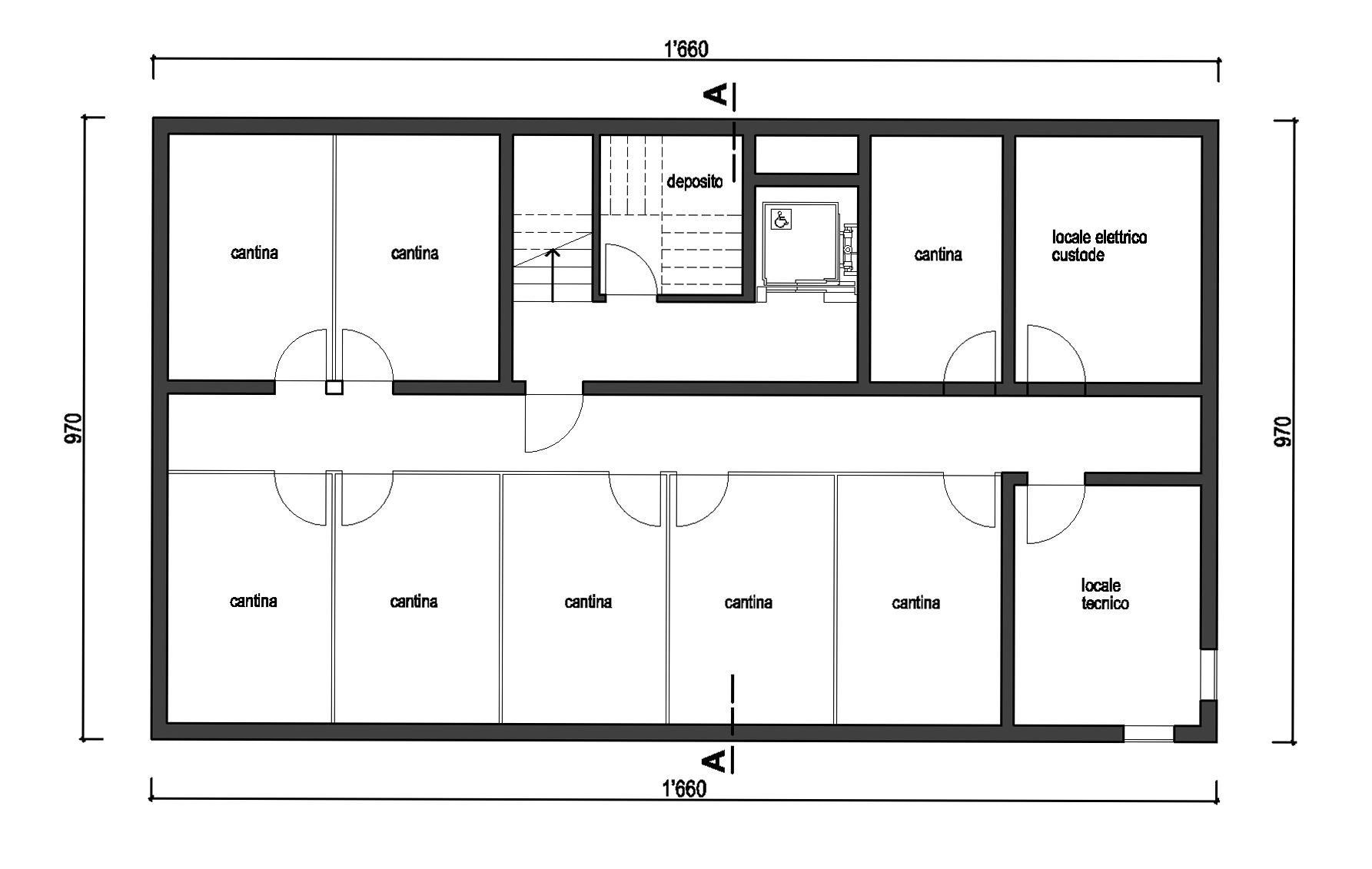 Al piano interrato comodamente raggiungibile con ascensore sono ubicate le cantine, il locale custode ed il locale tecnico.