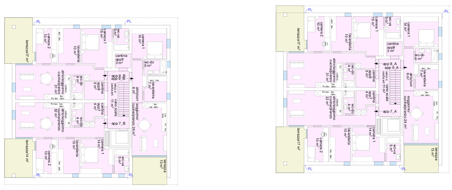 Ogni abitazione dispone della sua lavanderia privata ubicata all’interno dell’appartamento e della cantina collocata allo stesso piano, vicino all’ingresso principale.